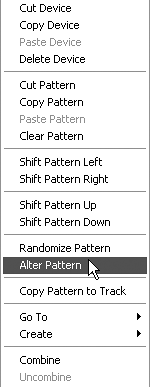 To use Matrix Edit commands 1. | Slightly alter a pattern by right-clicking on the Matrix and selecting Alter Pattern. (This can be a great way to vary and store a new pattern quickly.)