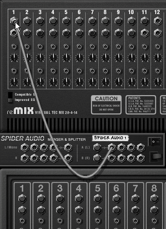 | 2. | Create an MClass Compressor and MClass EQ (or MClass Suite); send one split from the Spider to the Compressor's audio inputs and another split to the audio inputs of the EQ (Figure 11.47).