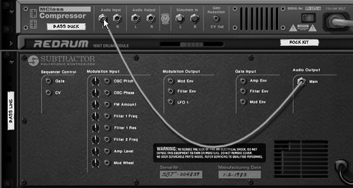 | 3. | Now cable the audio outputs from the bass to the audio inputs of the Compressor (Figure 11.42).