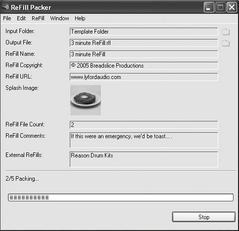 Both files are required by ReFill Packer, and must be present in the source folder. The info.txt file stores the actual name of your ReFill plus copyright and author information, and splash.jpg is the image that comes up in the browser whenever this ReFill gets loaded.