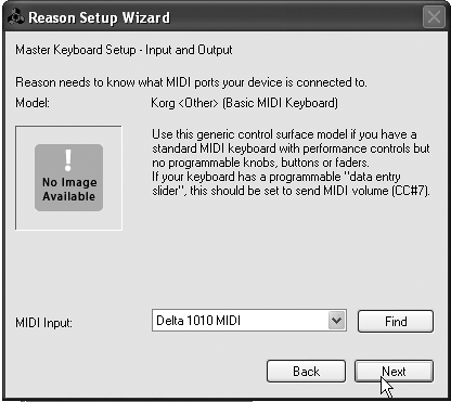 Figure 2.10. Reason will scan your system for your master keyboard.