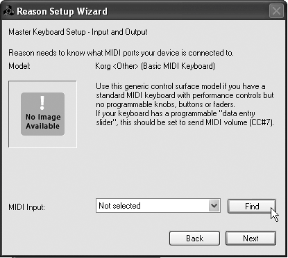 | 6. | If no MIDI port is listed, click Find (Figure 2.12).