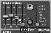 Figure 5.57. When modulating pitch, the mod envelope's sustain stage sets a frequency. At 44, the pitch of the sustained note will settle on a high note.