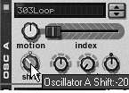 | The Index slider has different effects when the oscillator sample is in motion. Let's try it with a longer, more recognizable type of sample: a bass loop from the oscillator bank. To adjust waveform motion 1. | Turn the Motion knob back to the middle 0. This sets the playback rate for the sample to the same rate at which it was recorded.