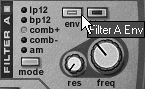 | 2. | For a weird "plucking" effect, click the Env button to enable the envelope for Filter A (Figure 5.121) and set the filter envelope Amt knob to 42 (Figure 5.122).