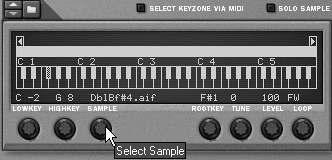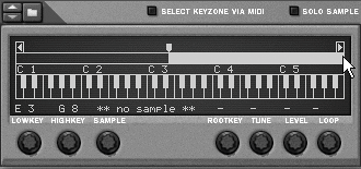 | 2. | Click the Browse Sample button, navigate to the desired sample, and click OK. The new sample appears in the sample map display, with the default root key (C3) and default key zone (all keys).