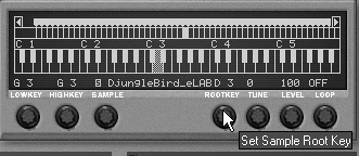 | Tips To alter a pitch with keyboard tracking off, select the sample and adjust the Rootkey knob to the left for lower pitch, or to the right for higher (Figure 6.43). Figure 6.43. Set the root key of a sample by turning the Rootkey knob.