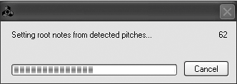 | 2. | Select Edit > Set Root Notes From Pitch Detection. A status window appears, indicating progress (Figure 6.82).