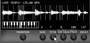| 2. | Hold down Ctrl (Win) / Cmd (Mac) to get the fine adjustment mode, and turn the Pitch knob to 7 (Figure 6.148). This raises the pitch of Slice 6 a perfect fifth.