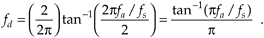 To show the practical implications of this frequency warping, let's relate the s-plane and z-plane frequencies to the more practical measure of the fs sampling frequency. We do this by remembering the fundamental relationship between radians/s and Hz of w = 2pf and solving for f to get