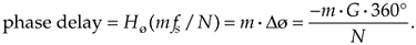 For FIR filters, the output phase shift measured in degrees, for the passband frequency f = mfs/N, is expressed as
