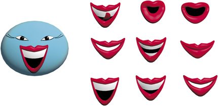 The mouth can be highly expressive and take on a huge variety of shapes, so proper design is very important. Most characters have mouths that are integral to the surface of the face. As with eyes and brows, this makes the creation of proper shapes and morph targets a significant modeling task. Some characters sidestep this issue and use replacement animation for the mouths, which isn't realistic but can lend the project a stop-motion feel.