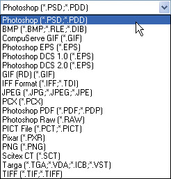Choose a file format from the Format drop-down list. Photoshop will only display those file types capable of storing layers and transparency.