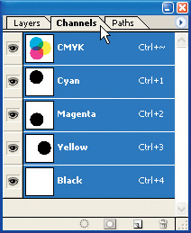 Palettes are grouped together with other related palettes. Each palette has a tab with its name extending from the top. To switch between palettes in a group, click the name tab as shown here: