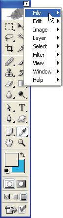 Fly-out menus are indicated in Photoshop and ImageReady by this small arrow in a dialog box or by a small arrow at the corner of a tool in the Toolbox.