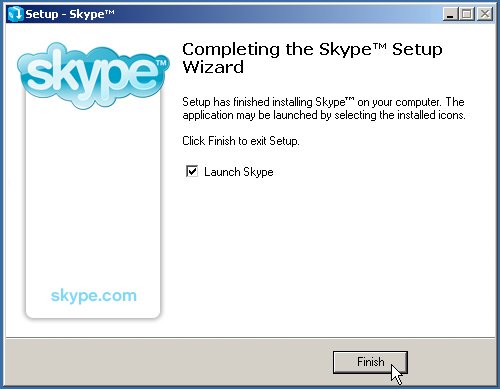 | | | 9. | Complete the Skype installation by clicking Finish.