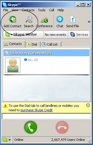 Type the Skype Name, full name, or e-mail address of the person you are looking for, and click Search. Select a contact from the list, and click Add Selected Contact. You will be asked to send your contact details. Alternatively, you can use Skype's ability to import contacts from address books in Outlook or other programs. To do this, choose Contacts > Import Contacts. Skype will search your address book and compare the information it finds with Skype Names. If Skype discovers any matches, you can follow the wizard to import contacts.