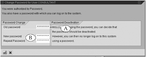| You can change your SAP password during the logon process through the SAP screen, which is displayed when you log on with the SAP Logon Pad. (You cannot change it when you log on with a desktop shortcut.) Just follow this next procedure. Procedure: Changing Your Password When You Log On Step 1. | Follow the procedure for logging on with the SAP Logon pad. (See Lesson 1).