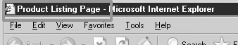 When your browser reads this set of tags, it knows that the information within the tags contains the title of the page, “Product Listing Page,” and that it can display that title at the top of the browser window, as shown here.