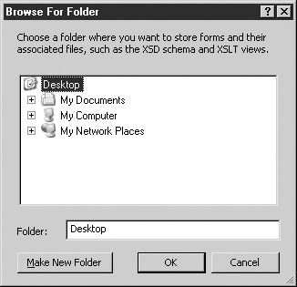 You can use this dialog box to select a folder in which the extracted form files will be saved or you can click the Make New Folder button in the lower-left corner to create a new folder to hold the form files. An InfoPath form can be made up of a number of different types of files. For example, Table 11-1 lists and describes the files that were used to create the sample Employee Details form.