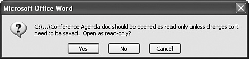 When you attempt to open the document now, Word or Excel displays a dialog box similar to the one shown in Figure 14.2. Click Yes to open the document as read-only; click No if you want to make changes to the document. Figure 14.2. With the Read-Only Recommended check box activated, Word or Excel displays this dialog box before opening the document.  Using File Passwords and Encryption The Read-Only Recommended option places a hurdle in front of a user bent on modifying a document, but only a very small one. To defeat this protection, he or she need only click No at the Open as Read-Only? prompt shown in Figure 14.2. If you are serious about protecting the contents of a document, you need to take the security to a higher level by assigning a password to the document. You can assign passwords to Word documents, Excel workbooks, and PowerPoint presentations. In each case, the program uses the password as a key to encrypt the document contents. The only way to view or modify the document is to supply the password. Here are the steps to follow to assign a password to encrypt a Word document, an Excel workbook, or a PowerPoint presentation: 1. | Select Tools, Options to display the Options dialog box.