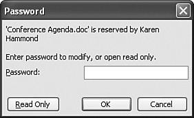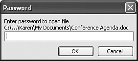 Figure 14.4. You see this dialog box when you assign a password to modify a document.  | 4. | Click OK. The program prompts you to enter the password to open and/or to modify the password. In each case, re-enter the password and click OK.