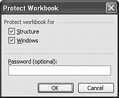 Figure 14.8. Use the Protect Workbook dialog box to protect your workbook structure and windows.  | 3. | Activate the check boxes for the workbook items you want to protect: Structure and/or Windows.