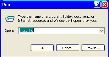 In the Open dialog box, type msconfig and click OK.