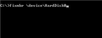 Fixmbr \device\HardDisk0 This rewrites the master boot record for the specified drive (HardDisk0). If you fail to specify the device, the master boot record for your booting drive is rewritten.