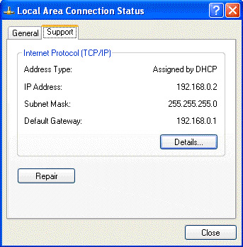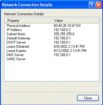 To get a snapshot of your connection details, take these steps on Windows XP: