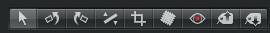 This strip of buttons is used to make basic adjustments to an image. At the far left, the Selection tool is selected by default; use it to select items in the interface. The next two buttons are the rotation tools.