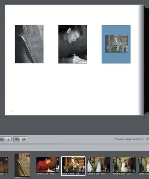Tip If you drag an image directly to the spine of the book, you can create a unified background for a two-page spread. A common use of image books is presenting proofs to a client. A print or PDF book of proofs is an extremely effective way to display your work to a client, especially since it is so easy for the client to look through it and gain a sense of what the images will look like when they are published. In these instances, it's useful to view metadata with your images.