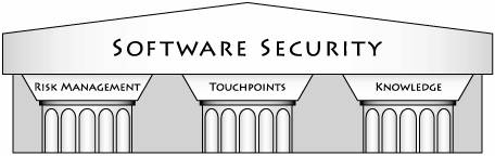 | Software security is an ongoing activity that requires a cultural shift. There is unfortunately no magic tool or just-add-water process that will result in secure software. Software security takes work. That's the bad news. The good news is that any organization that is developing software, no matter what software development methodology it is following (if any!), can make straightforward, positive progress by following the plan laid out in this book. Software security naturally borrows heavily from software engineering, programming languages, and security engineering. The three pillars of software security are applied risk management, software security touchpoints, and knowledge (see Figure 1-8). By applying the three pillars in a gradual, evolutionary manner and in equal measure, a reasonable, cost-effective software security program can result. Throughout the rest of this book, I discuss the three pillars and their constituent parts at length. Figure 1-8. The three pillars of software security are risk management, software security touchpoints, and knowledge.  | Pillar I: Applied Risk Management | No discussion about security is complete without considering risk management, and the same holds true for software security. To make risk management coherent, it is useful to draw a distinction between the application of risk analysis at the architectural level (sometimes called threat modeling or security design analysis) and the notion of tracking and mitigating risk as a full lifecycle activity. Architectural risk analysis is a best practice and is one of the central touchpoints (see Chapter 5). However, security risks crop up throughout the software development lifecycle (SDLC); thus, an overall approach to risk management as a philosophy is also important. I will call this underlying approach the risk management framework (RMF). Risk management is often viewed as a "black art"that is, part fortune-telling, part mathematics. Successful risk management, however, is nothing more than a business-level decision-support tool: a way to gather the requisite data to make a good judgment call, based on knowledge of vulnerabilities, threats, impacts, and probabilities. Risk management has a storied history. Dan Geer wrote an excellent overview [Geer 1998]. What makes a good software risk assessment is the ability to apply classic risk definitions to software designs in order to generate accurate mitigation requirements. Chapter 2 discusses an RMF and considers applied risk management as a high-level approach to iterative risk identification and mitigation that is deeply integrated throughout the SDLC. Carrying out a full lifecycle risk management approach for software security is at its heart a philosophy underpinning all software security work. The basic idea is to identify, rank, track, and understand software security risk as the touchpoints are applied throughout the SDLC. Chapter 5 provides a discussion of architectural risk analysis. In that chapter I briefly introduce some practical methods for applying risk analysis techniques while software is being designed and built. There are many different, established methodologies, each possessing distinct advantages and disadvantages. | Pillar II: Software Security Touchpoints | On the road to implementing a fundamental change in the way we build software, we must first agree that software security is not security software. This is a subtle point often lost on development people, who tend to focus on functionality. Obviously, there are security functions in the world, and most modern software includes security features; but adding features such as SSL to your program (to cryptographically protect communications) does not present a complete solution to the security problem. Software security is a system-wide issue that takes into account both security mechanisms (such as access control) and design for security (such as robust design that makes software attacks difficult). Sometimes these overlap, but often they don't. Put another way, security is an emergent property of a software system. A security problem is more likely to arise because of a problem in a system's standard-issue part (say, the interface to the database module) than in some given security feature. This is an important reason why software security must be part of a full lifecycle approach. Just as you can't test quality into a piece of software, you can't spray paint security features onto a design and expect it to become secure. There's no such thing as magic crypto fairy dustwe need to focus on software security from the ground up. We need to build security in. As practitioners become aware of software security's importance, they are increasingly adopting and evolving a set of best practices to address the problem. Microsoft has carried out a noteworthy effort under its Trustworthy Computing Initiative [Walsh 2003; Howard and Lipner 2003]. (See the next box, Microsoft's Trustworthy Computing Initiative.) Most approaches in practice today encompass training for developers, testers, and architects; analysis and auditing of software artifacts; and security engineering. In the fight for better software, treating the disease itself (poorly designed and implemented software) is better than taking an aspirin to stop the symptoms. There's no substitute for working software security as deeply into the development process as possible and taking advantage of the engineering lessons software practitioners have learned over the years. Figure 1-9 specifies the software security touchpoints (a set of best practices) that I cover in this book and shows how software practitioners can apply the touchpoints to the various software artifacts produced during software development. These best practices first appeared as a set in 2004 in IEEE Security & Privacy magazine [McGraw 2004]. Since then, they have been adopted (and in some cases adapted) by the U.S. government in the National Cyber Security Tas