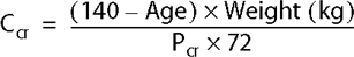 The creatinine clearance (Ccr) is approximately 100 mL/min/1.73 m2 in healthy young women and 120 mL/min/1.73 m2 in healthy young men. The Ccr declines by an average of 0.8 mL/min/yr after age 40 years as part of the aging process, but 35% of subjects in one study had no decline in renal function over 10 years. Because urine collection may be difficult, Ccr can be estimated from the formula of Cockcroft and Gault, which incorporates age, sex, and weight to estimate Ccr from plasma creatinine levels without any urinary measurements: