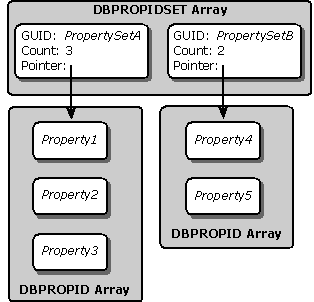 - Store the GUID for each property set in the appropriate DBPROPIDSET structure. The consumer then stores a pointer to the corresponding DBPROPID array, along with the number of elements in the array, in the same DBPROPIDSET structure.