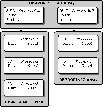 - For each element of the DBPROPIDSET array, allocate an array of DBPROPINFO structures. The elements of the DBPROPINFO array correspond to the elements of the DBPROPID array.