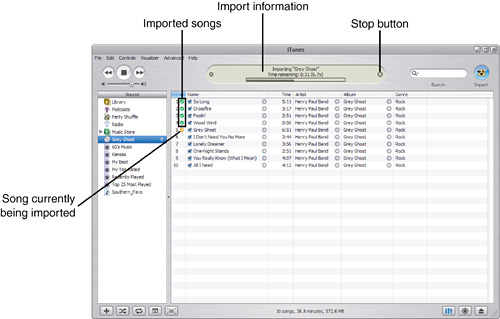If you have the Play songs while importing preference active, the music will keep playing long after the import process is complete (because importing is much faster than playing is). Listen for the complete tone or keep an eye on the screen to determine when all the music on the CD has been imported.