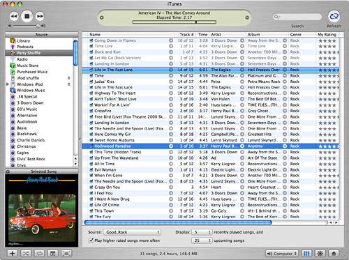 Figure 18.16. The Party Shuffle source might seem odd to you at first, but once you get to know it, you'll love it.  tip  | You can also edit a smart playlist by selecting it and opening the Info window (which also opens the Smart Playlist dialog box). Plus, you can open the playlist's contextual menu by right-clicking (Windows or Mac) or Ctrl-clicking it (Mac) and selecting Edit Smart Playlist. |