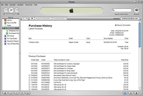 Figure 24.7. Yes, I do use the iTunes Music Store, as my purchase history shows.