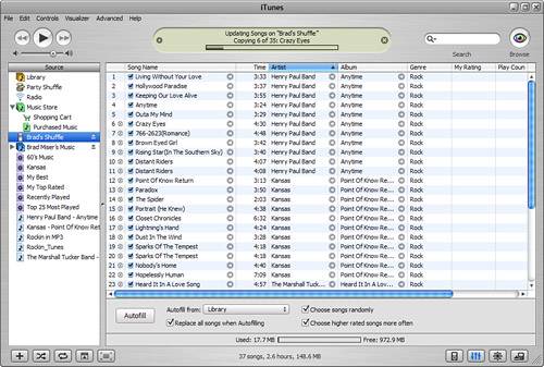 Figure 6.13. This shuffle is getting filled up with the good stuff.  tip  | If you have elected the random option, each time you click Autofill, a new set of songs will be placed on your shuffle. |