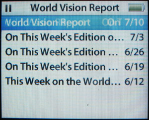 Figure 11.5. This menu shows all of the episodes of a podcast that have been downloaded to this iPod.