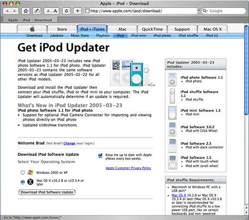 Figure 12.4. Apple's iPod Updater page provides access to the latest iPod software.