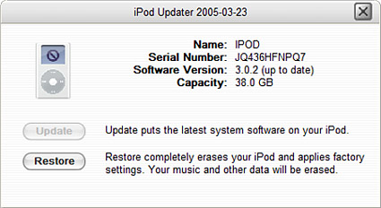 Figure 12.5. You use the iPod Updater application to update your iPod's software or to restore it to original condition.
