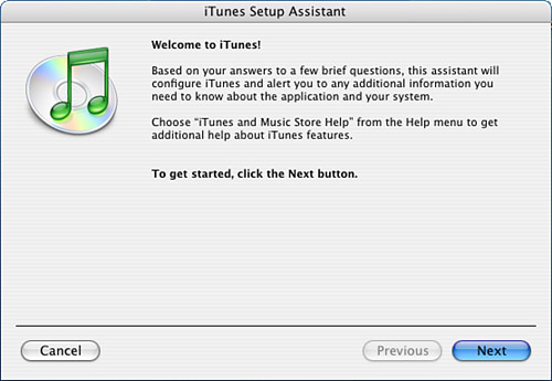 Figure 14.7. The iTunes Setup Assistant lives up to its name.