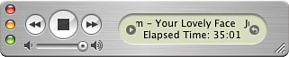 Changing the Size of the iTunes Window on a Mac When you use iTunes on a Mac, you can change the window's size in the following ways: Hide the application Press -H to hide iTunes. Its window will be hidden from the desktop. You can control iTunes by using its Dock menu or widget. Click the iTunes Dock icon to show the window again. Toggle the size of the window If you click the Toggle Size button (the green "light") on the window's title bar, the iTunes window will collapse so that only the playback controls and the Information window are shown (see Figure 15.16). Click the button again to open the window to its full size. Figure 15.16. On the Mac, you can quickly collapse the iTunes window to this handy size.