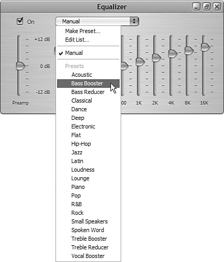 Figure 17.4. The Bass Booster preset does just what it sounds like it will.  | 5. | Continue choosing presets until the music sounds just right.