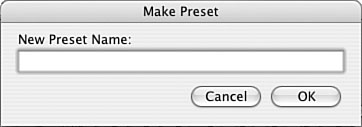 | 2. | Open the Presets menu and choose Make Preset. You'll see the Make Preset dialog box (see Figure 17.5).