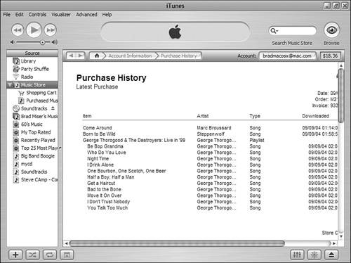 Figure 22.7. Yes, I do use the iTunes Music Store, as my purchase history shows.  | 7. | When you are done making changes, click Done. You will return to the Music Store.