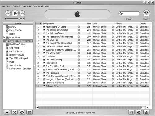Figure 14.7. iTunes is ready to add this CD to the Library.  | 3. | If there are songs that you don't want to add to the Library, uncheck their Select check boxes. Only songs with their check boxes checked will be imported. Unless you really hate a song or disk space is at a premium for you, it is generally better to import all the songs. You can use the Select check box in another source, such as in your Library, to cause those songs to be skipped when you play that source.