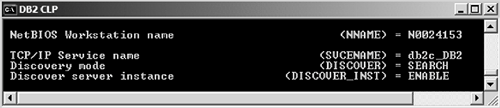 Figure F.3 shows that DB2COMM is set to TCPIP; therefore, the server is ready to listen for TCP/IP requests.